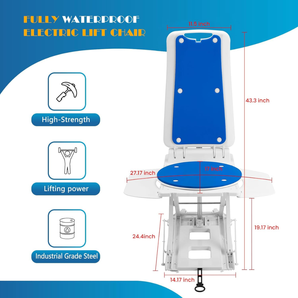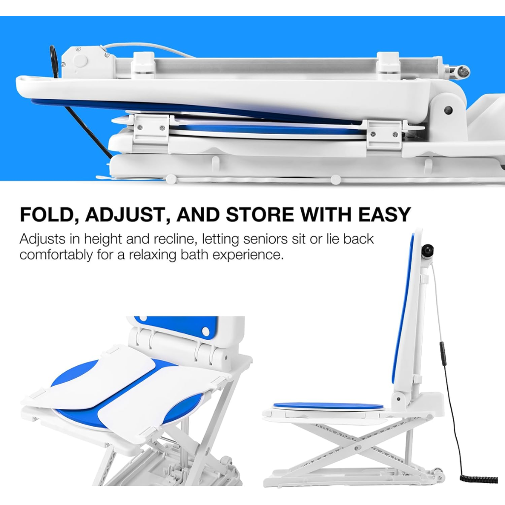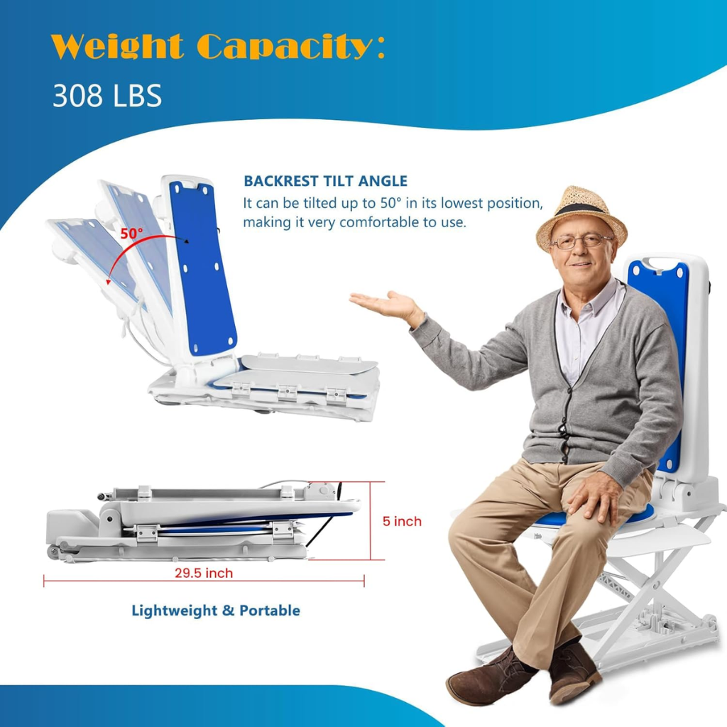 Electric Chair Lift for Seniors – Remote-Control Floor Lift with Padded Backrest, 308 lbs Capacity, Lightweight 24 lbs, IPX8 Waterproof Bathtub Lift for Elderly, Smooth & Safe Transfer Design, Includes Charger