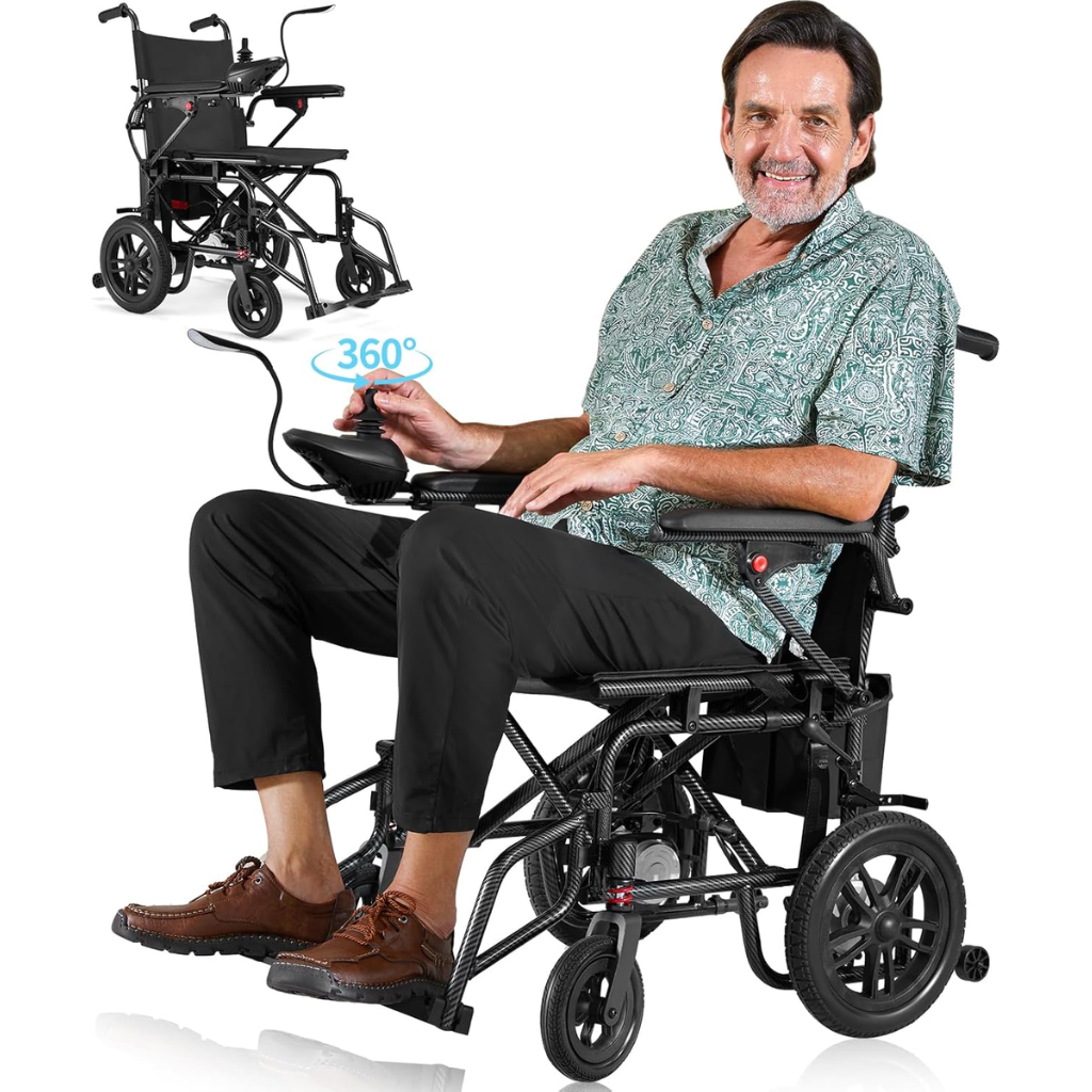 Foldable Electric Wheelchair for Adults, 360W Dual Motor Power Wheelchair with 15-Mile Range, 4MPH Max Speed, Supports Up to 286 lbs