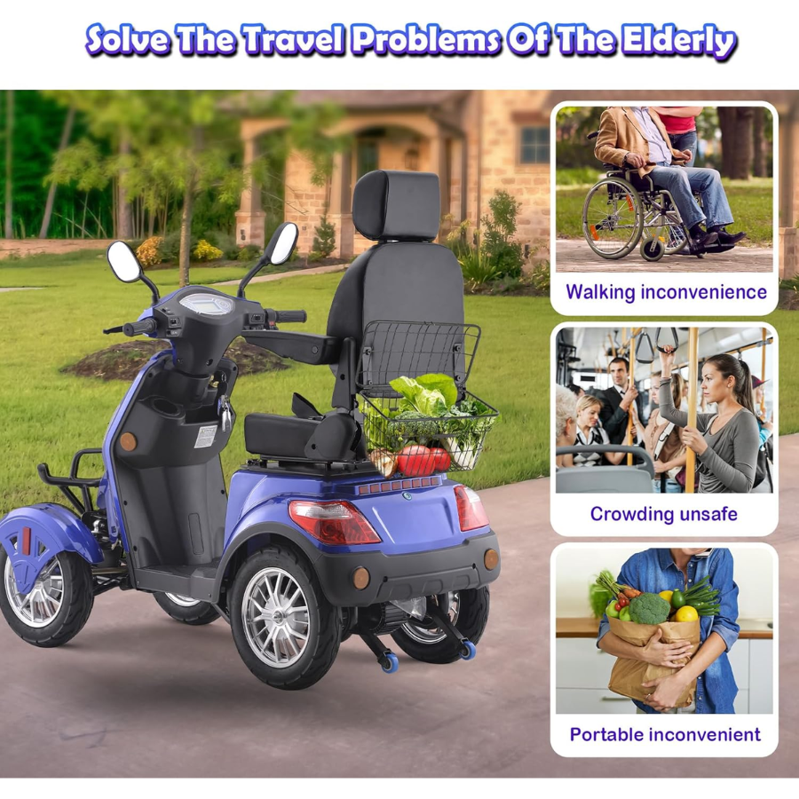 SKRT Large Electric 4-Wheel Mobility Scooter, 800W Motor, 500 lbs. Capacity, Adjustable Speed, Remote Key, Fully Assembled – Ready to Ride.
